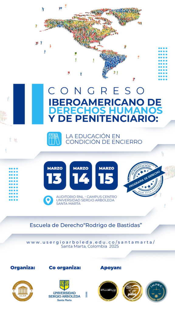 La Academia Latinoamericana de Derecho Penal Penitenciario, en coorganización con la Universidad Sergio Arboleda de Santa Marta, llevará a cabo el II Congreso Iberoamericano de Derechos Humanos y de Penitenciario los días 13, 14 y 15 de marzo de 2025 en el Auditorio RNL – Campus Centro de esta institución.
