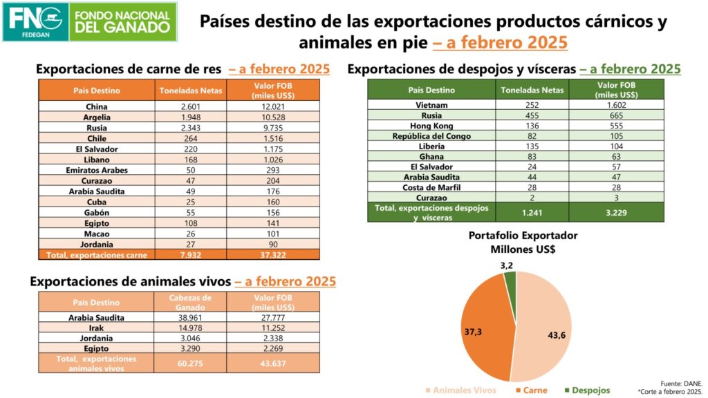 Según datos del DANE y análisis de FEDEGÁN, entre enero y febrero de 2025, Colombia exportó 60.275 animales vivos, lo que representó ingresos por 43,6 millones de dólares. Esta es la mejor cifra desde 2022, cuando se vendieron 92.716 bovinos por USD 67,4 millones.